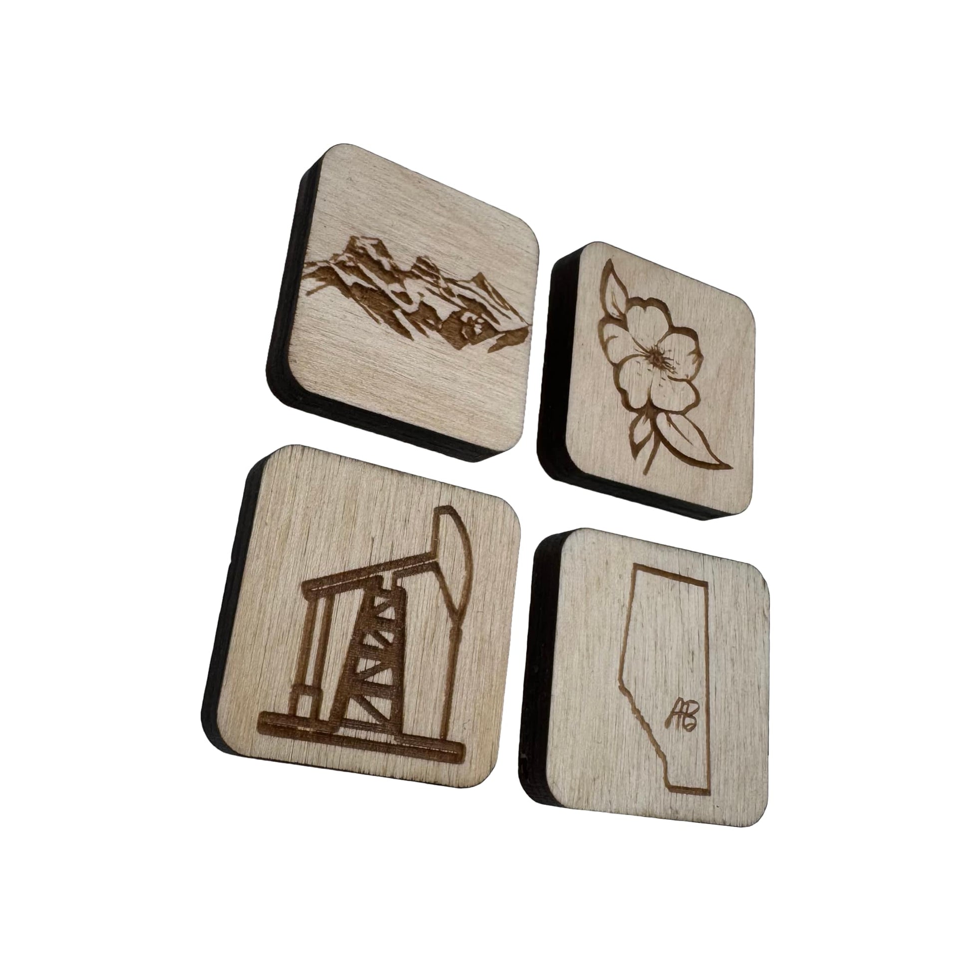Our magnets are made with 1/4" birch plywood. The wording is laser engraved. A clear coat is applied onto the wood for protection.