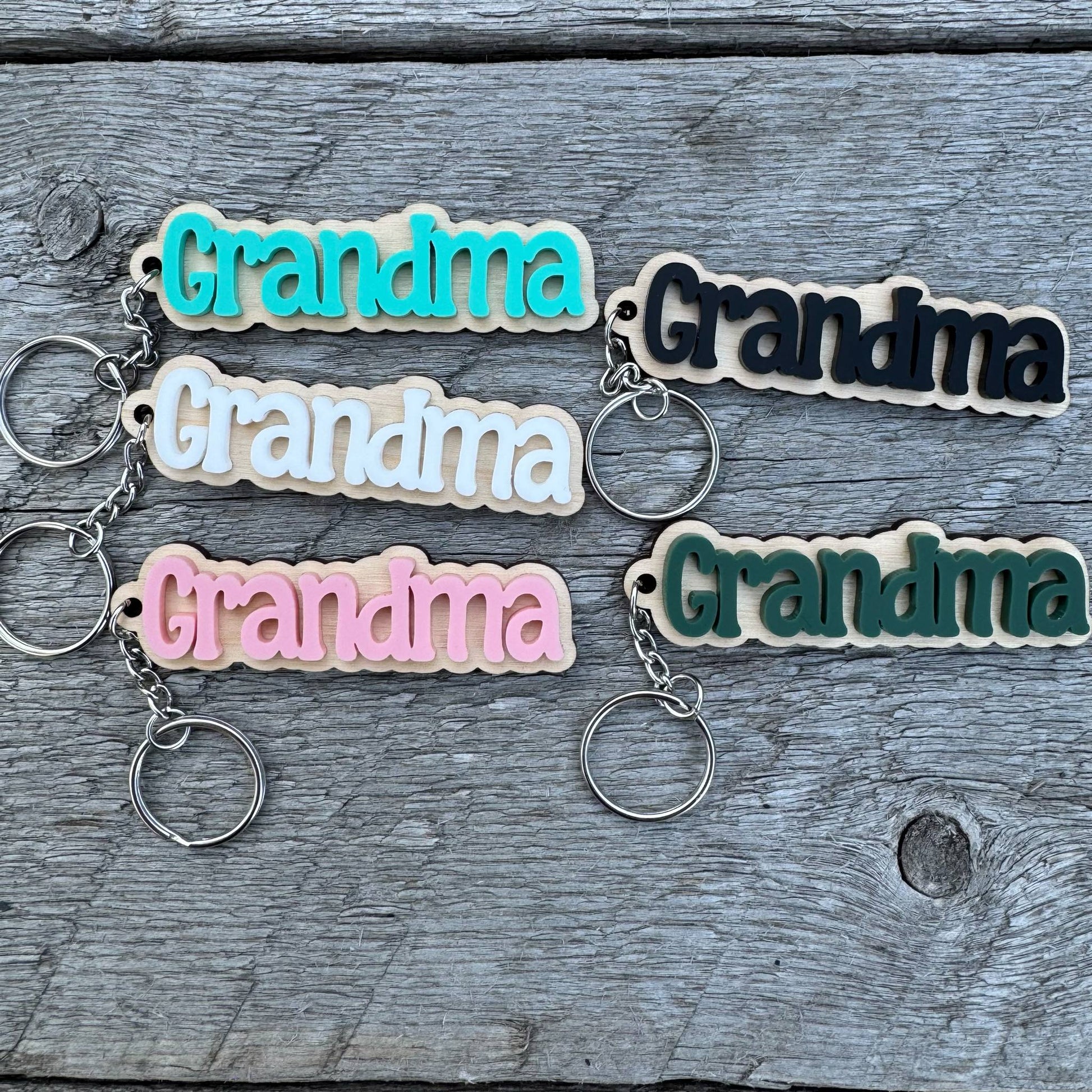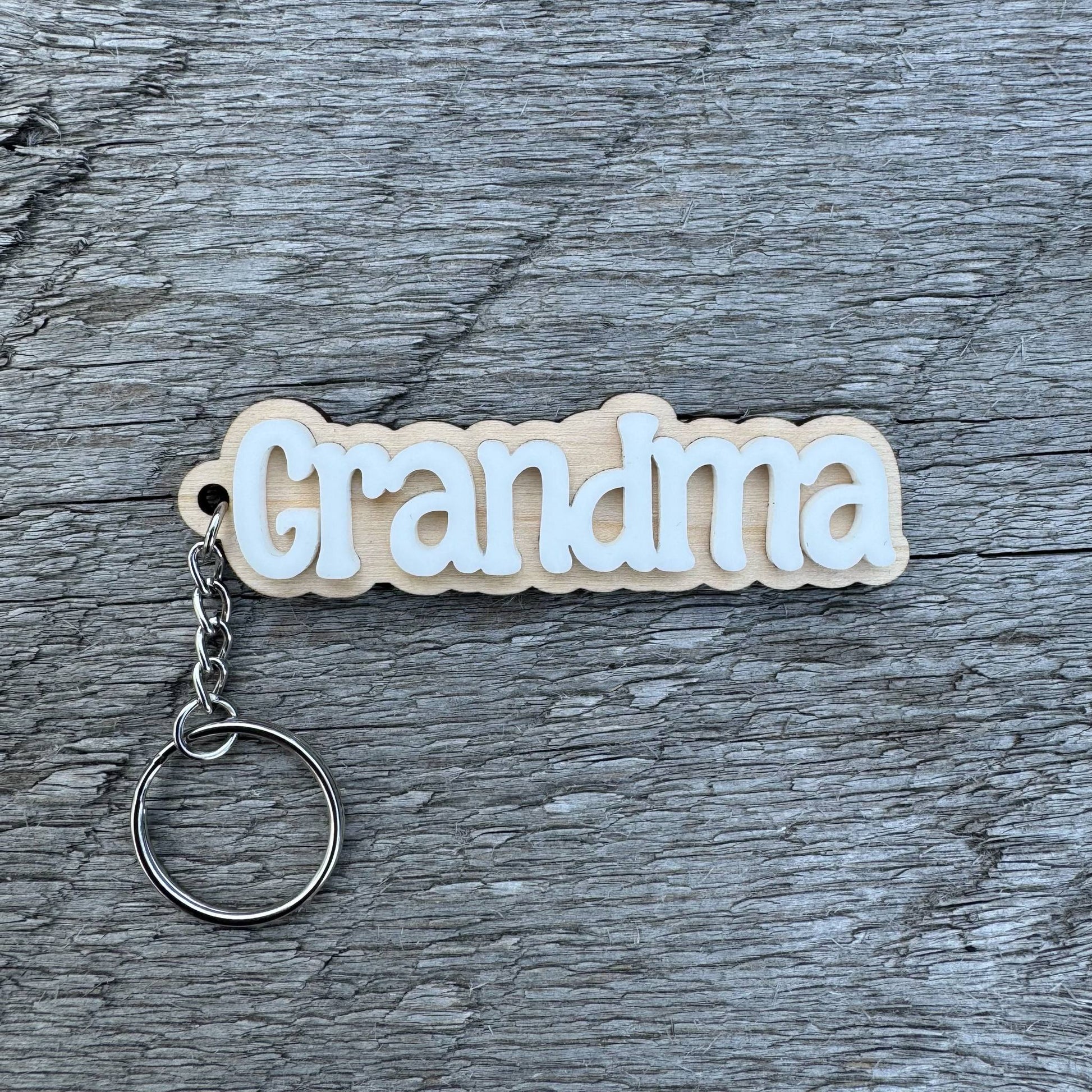 Our keychains are made with 1/8" birch plywood. The wording is laser engraved. A clear coat is applied onto the wood for protection. A keychain is attached onto the wood.