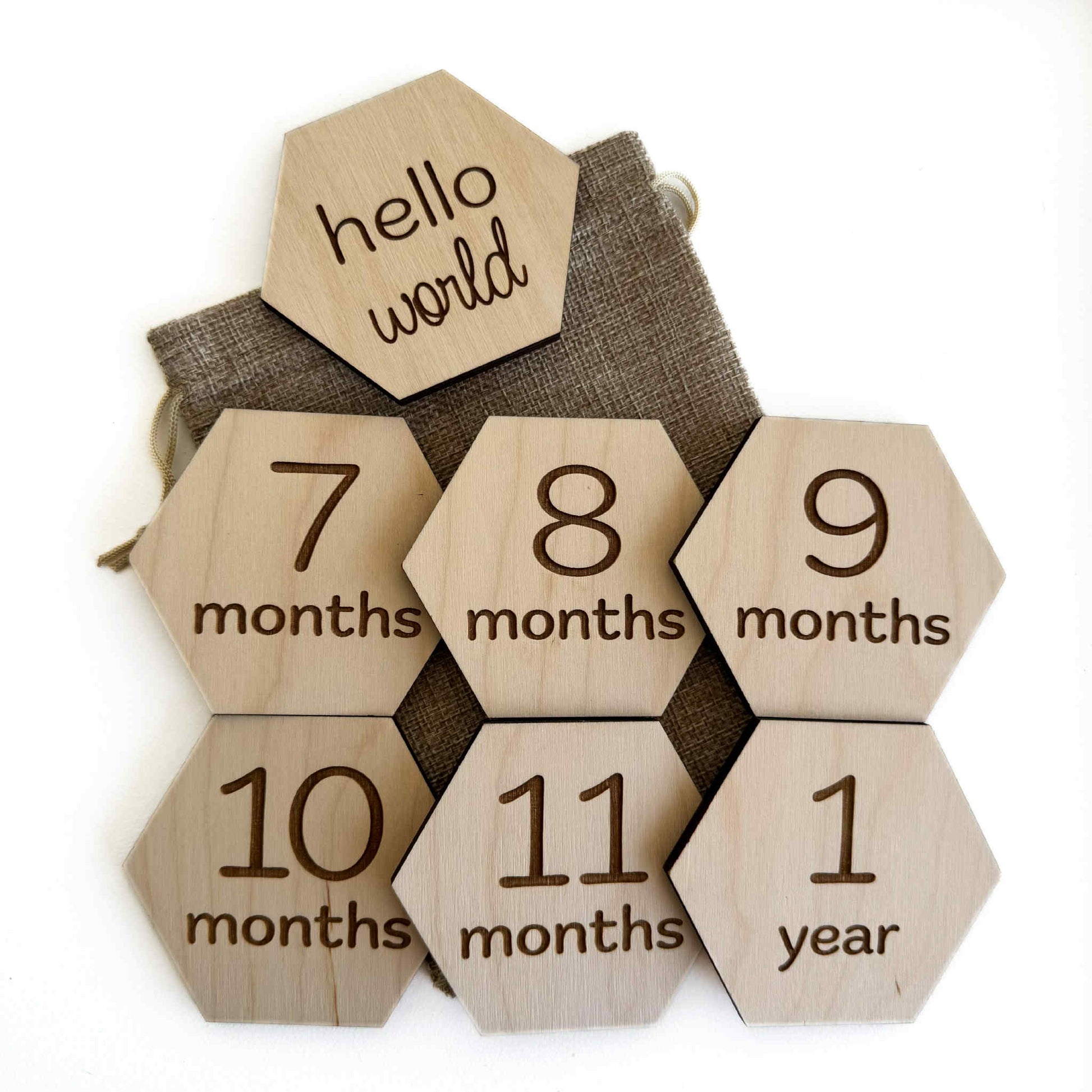 - Each set include 6 double sided monthly milestone discs (1-11 months and 1 year) and 1 single sided "hello world:.