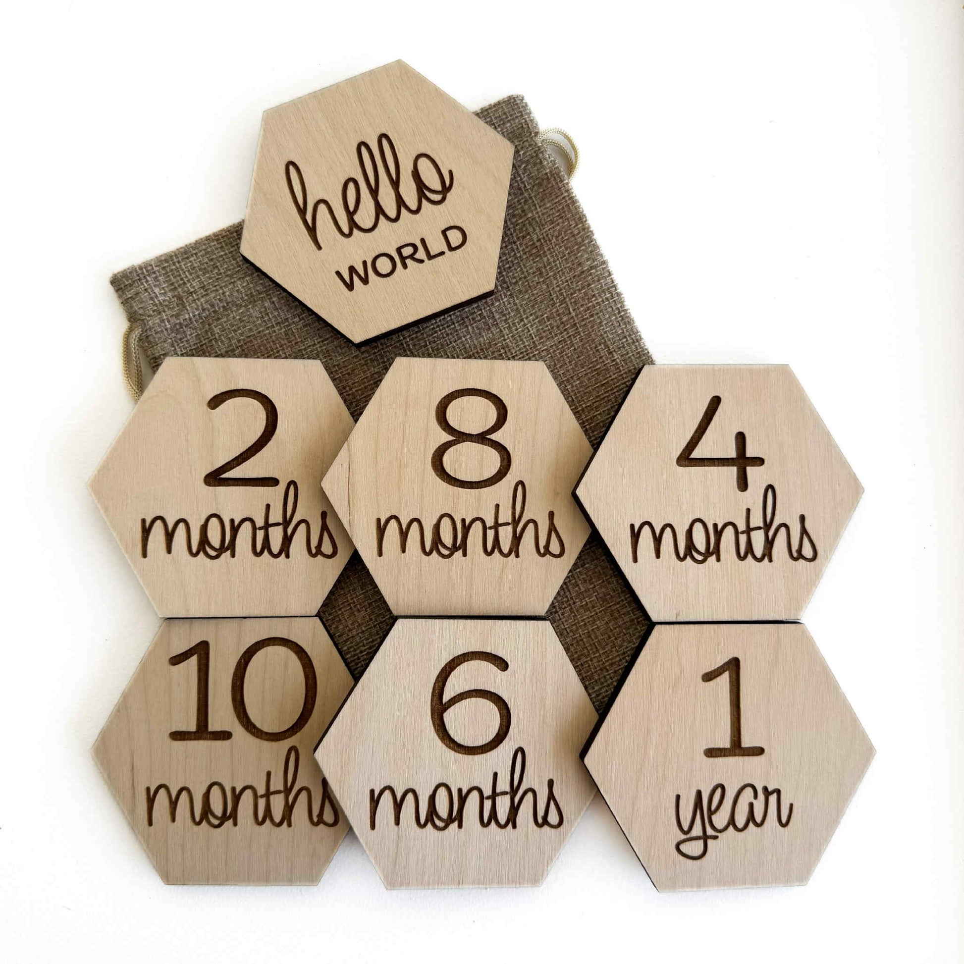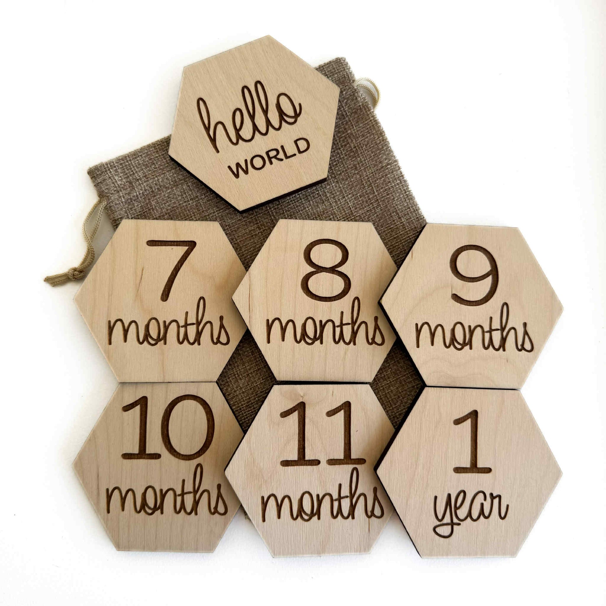 - Each set include 6 double sided monthly milestone discs (1-11 months and 1 year) and 1 single sided "hello world:.