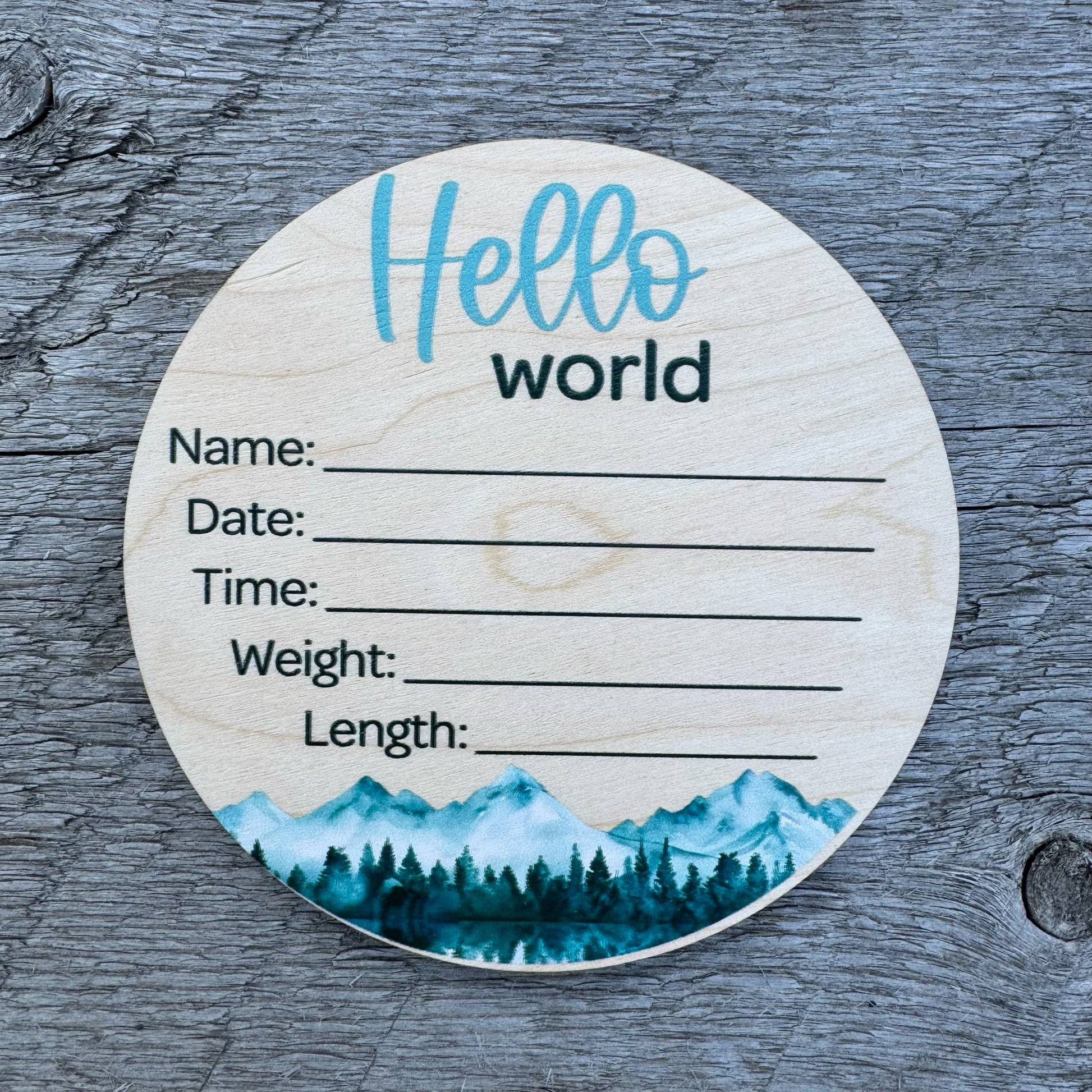 Made from 1/4" birch plywood. "Hello" is made with 1/4" acrylic and the rest of the lettering is laser engraved.