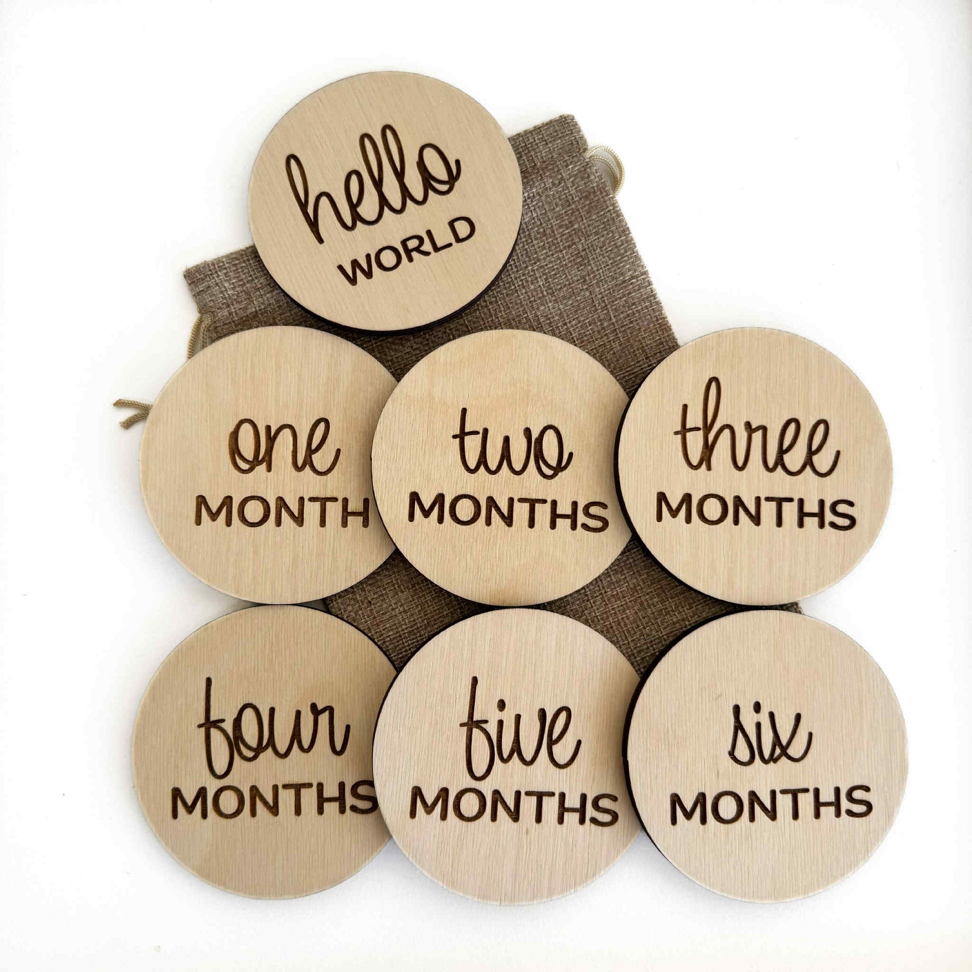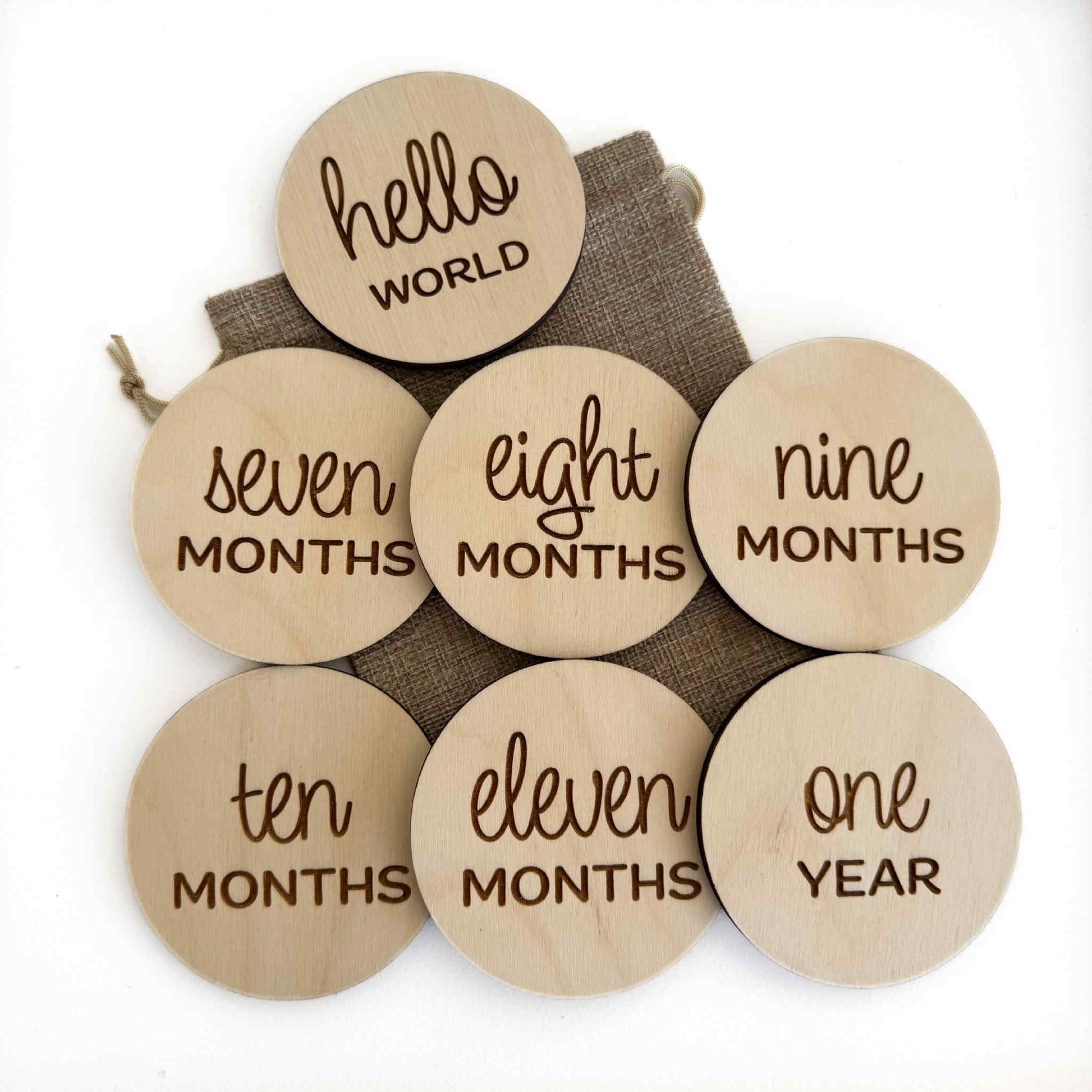 - Each set include 6 double sided monthly milestone discs (1-11 months and 1 year) and 1 single sided "hello world:.
