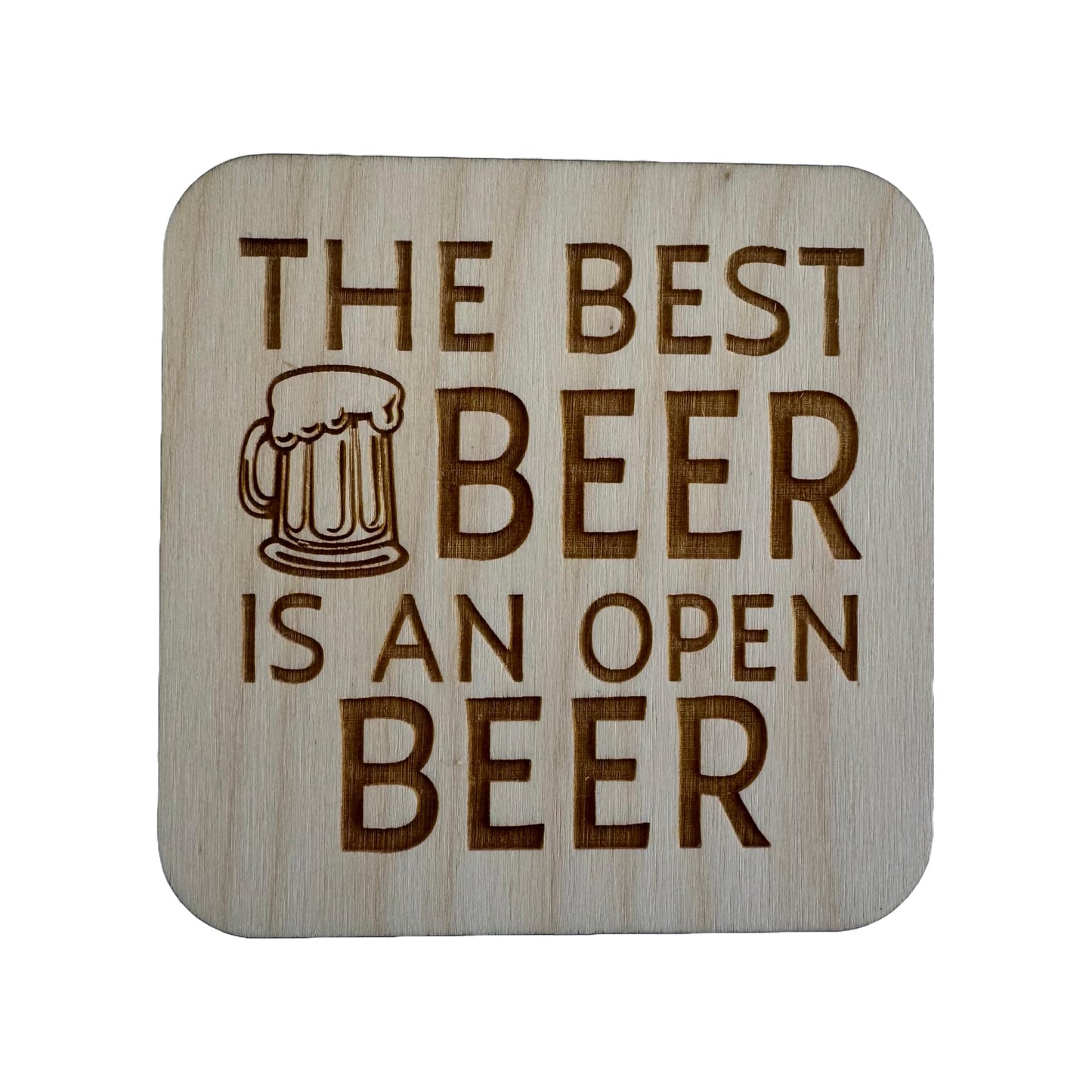 Keep the good times flowing with the “The Best Beer Is an Open Beer” Coaster — a humorous, laser-engraved wooden coaster that’s perfect for any beer enthusiast. Crafted from premium Baltic birch and backed with felt for surface protection, this rustic coaster is both fun and functional, making it a must-have for home bars, man caves, and weekend beer drinkers.